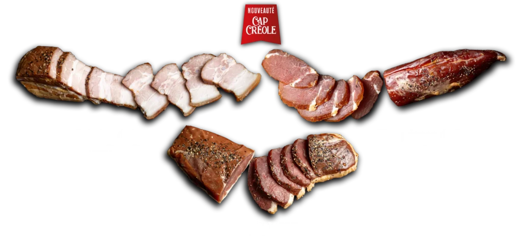 Fumés avec soin, subtilement épicés, nos produits sont pensés pour s’adapter à toutes vos envies : prêts à déguster pour un apéritif convivial, ou à cuisiner pour des plats créatifs aux accents caribéens. À travers chaque bouchée, c’est toute la richesse culinaire des îles qui s’invite à votre table.